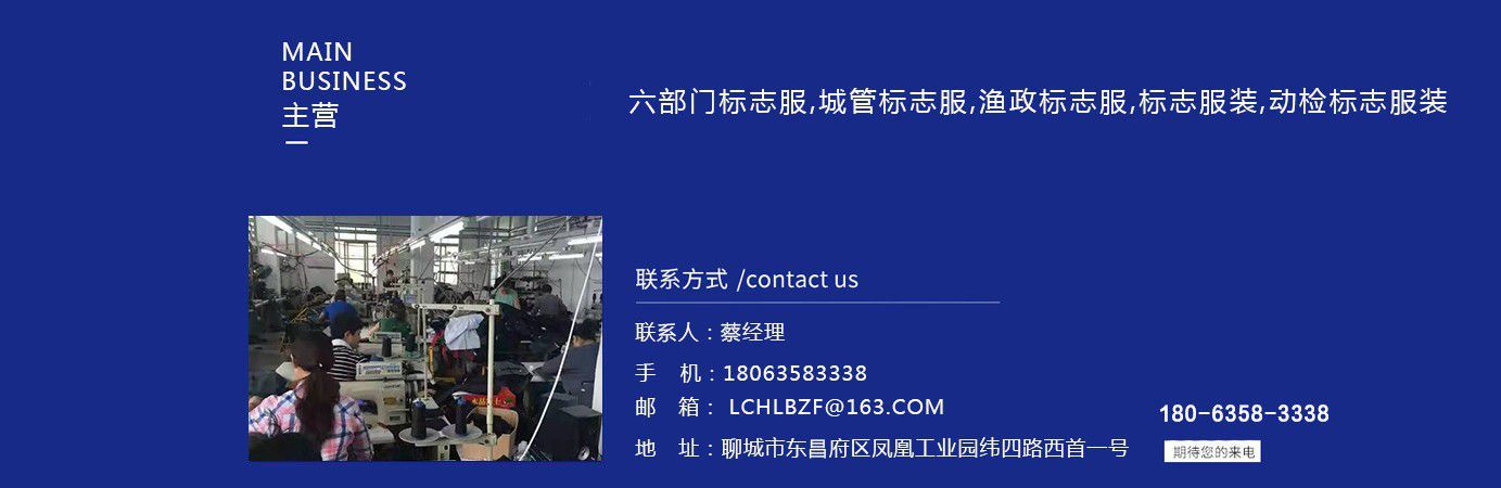 聊城市領(lǐng)祥服裝有限公司主主要生產(chǎn)六部門標(biāo)志服,城管標(biāo)志服,漁政標(biāo)志服,標(biāo)志服裝,動檢標(biāo)志服裝,標(biāo)志服裝廠等產(chǎn)品,款式新穎,做工精細(xì),可根據(jù)用戶要求批量定做。公司成立以來,已為各行業(yè)數(shù)千家企業(yè)、集團(tuán)承制了職業(yè)制服。 多年來,我公司本著“質(zhì)優(yōu)高效,守約重譽”的經(jīng)營理念給廣大新老客戶提供質(zhì)優(yōu)價廉的產(chǎn)品和售后服務(wù)。憑借良好的信譽,雄厚的實力,優(yōu)質(zhì)的產(chǎn)品,低廉的價格愿與新老客戶真誠協(xié)作,業(yè)務(wù)遍布全國各地,是山東優(yōu)秀的標(biāo)志服裝廠,歡迎新老客戶參觀考察!  公司生產(chǎn)的職業(yè)服飾均以標(biāo)準(zhǔn)的質(zhì)量,頂尖精湛的技術(shù)為基礎(chǔ),以客戶的滿意為根本,全程采用電腦輔助設(shè)計制服,成衣、服飾配件(領(lǐng)帶,領(lǐng)結(jié),紐扣,帽子,企業(yè)標(biāo)志等)均可定織定染,普遍采用進(jìn)口或合資優(yōu)質(zhì)輔料,尺碼按身高和體型劃分或量體定制。每一道工序,每一個生產(chǎn)環(huán)節(jié)精雕細(xì)琢,充分體現(xiàn)了以質(zhì)量求生存,以信譽求發(fā)展的理念。并以準(zhǔn)確的市場定位,先進(jìn)的營銷理念,贏得廣大客戶的信賴支持!  公司宗旨:“團(tuán)結(jié)、服務(wù)、創(chuàng)新”。公司方針:“專業(yè)創(chuàng)造輝煌,質(zhì)量保證未來,用心換得人心”。熱誠歡迎業(yè)界同仁來公司洽談!...